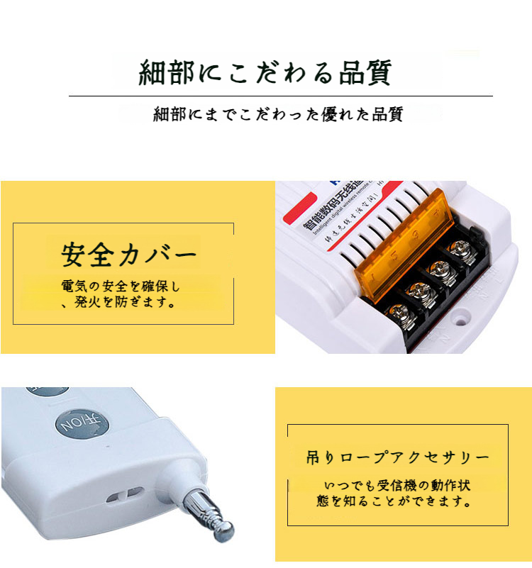 ワイヤレスライトスイッチキット コントロールランプ オン/オフ デュアルスイッチコントローラー レシーバーリモートコントロール付き 家電照明 ホワイト